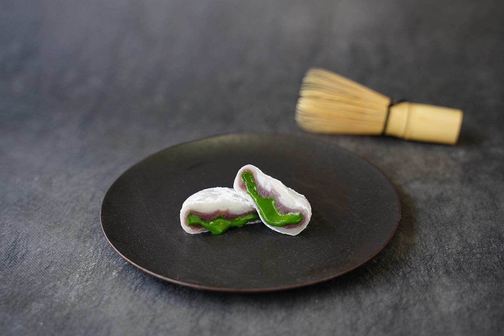 京都府産石臼挽き一番茶の濃厚な生クリームと 北海道産小豆の餡を贅沢に包み込んだ、